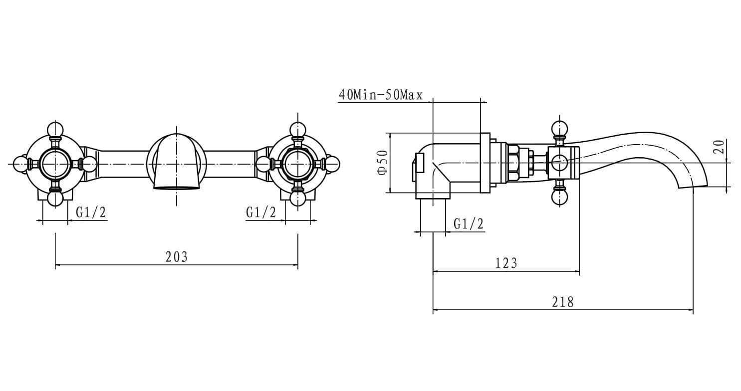 DoratO Alberto Traditional Wall Mounted Basin Tap